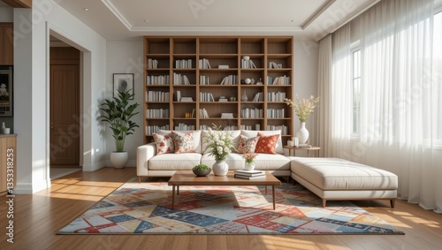 © BEN, Fototapeta premium Bright And Spacious Modern Living Room With Elegant Furniture And Cozy Decor Elements