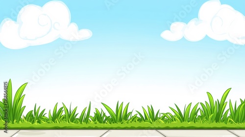 Obraz premium Bright and Vibrant Grass with a Clear Blue Sky and Fluffy Clouds in the...