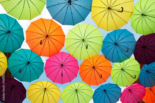 Naklejka premium Bright and vivid umbrellas in the sky for background