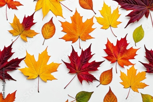 © Anna, Fototapeta premium Bright autumn maple leaves on a white background