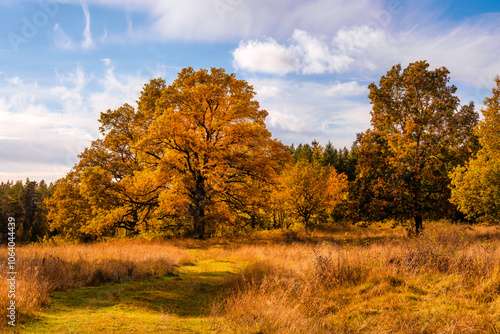 Fototapeta premium Bright autumn scene with large trees
