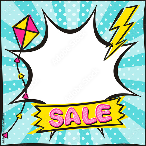 Fototapeta premium Bright banner for discounts or sales in the style of popart. Explosion on a...
