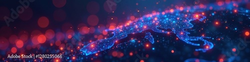 © Pongpob, Fototapeta premium Bright banner with glowing network icons and data streams , server, system, progress