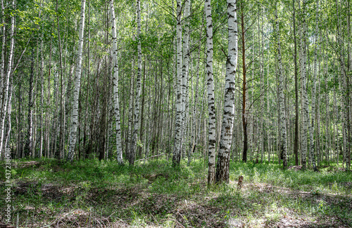 Fototapeta premium Bright birch grove on a clear sunny spring day.