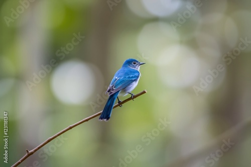 © hyperbleh, Obraz premium Bright blue bird perched on a branch in a natural woodland setting