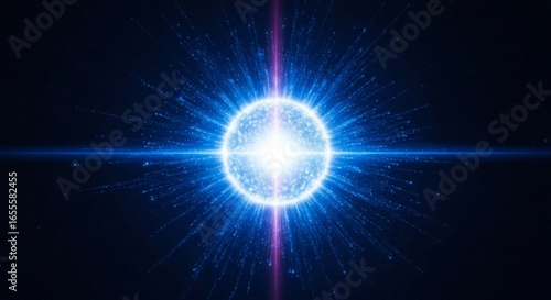 © Anwarul, Fototapeta premium Bright blue cosmic star with light trails in deep space