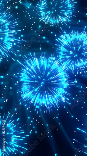 Fototapeta premium Bright Blue Fireworks Burst with Light Rays on a Dark Blue Background with...