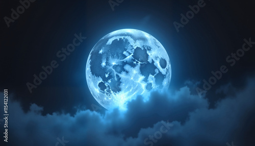Fototapeta premium Bright blue full moon shining through cloudy night sky