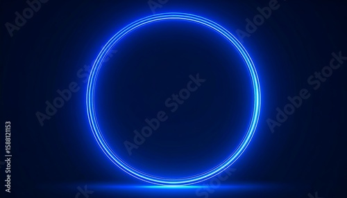 © Nunung, Fototapeta premium Bright blue glowing circle on dark background