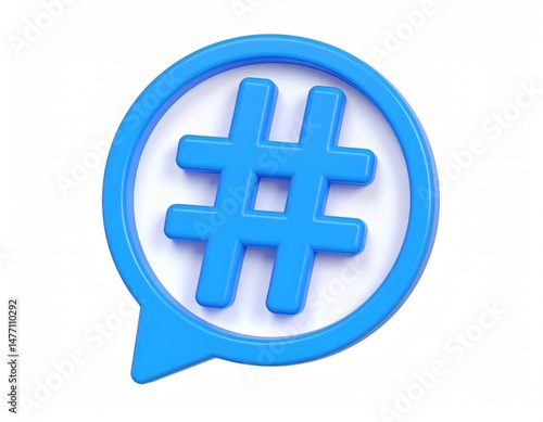 © Fatwaram, Obraz premium Bright Blue Hashtag in Speech Bubble: A 3D Render
