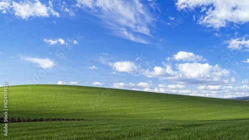 © The 2R Artificiality, Obraz premium Bright blue heavens paired with lush green turf featuring blank area