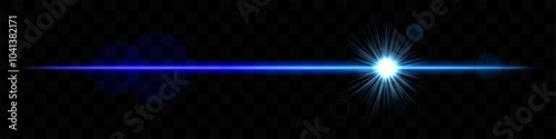 Obraz premium Bright Blue horizontal light flare with lens effect. Shining burst, luminous beam, optical flash, glowing streak, radiant glow, transparency.