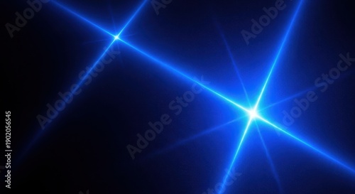 Obraz premium Bright blue lens flares and starburst effects on a dark space background with...