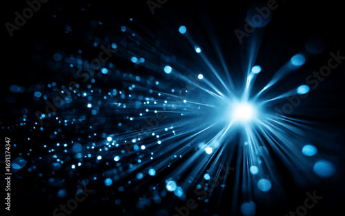 © fanjianhua, Fototapeta premium Bright Blue Light Burst with Radiating Lines in Dark Background