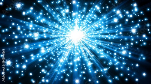 © Sultan, Fototapeta premium Bright blue light radiates outwards with glowing star particles