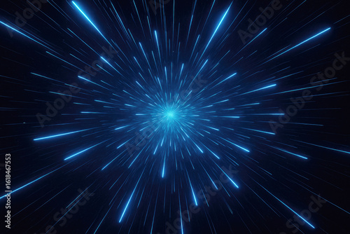 Fototapeta premium Bright blue light rays radiate outward from a central point creating a dynamic burst effect in a dark background