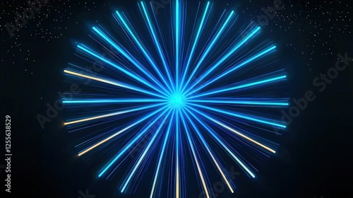 Fototapeta premium Bright Blue Light Rays Radiating from Center Against Dark Background with...