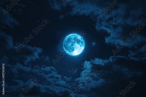 Fototapeta premium Bright Blue Moon Illuminates Night Sky
