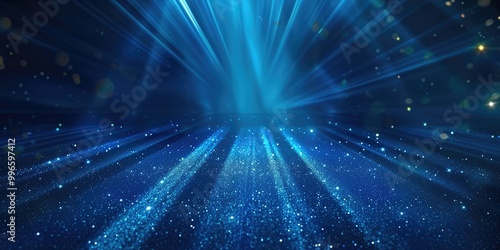Fototapeta premium Bright blue neon lights creating a gem-like effect on a dark background.