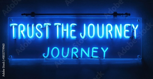 Fototapeta premium Bright blue neon sign displays inspirational message. Rectangular shape...