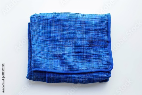 © gankevstock, Fototapeta premium Bright blue picnic blanket folded on white background