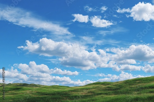 © aletia2011, Fototapeta premium Bright blue sky over lush grassy hill landscape