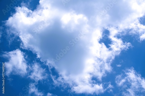 Fototapeta premium Bright Blue Sky with Fluffy White Clouds on a Sunny Day.
