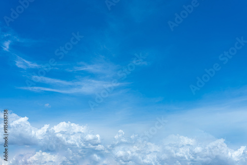 Fototapeta premium Bright blue sky with fluffy white clouds on a sunny day