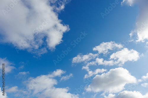© Chmutphoto, Naklejka premium Bright Blue Sky with Scattered Cumulus Clouds