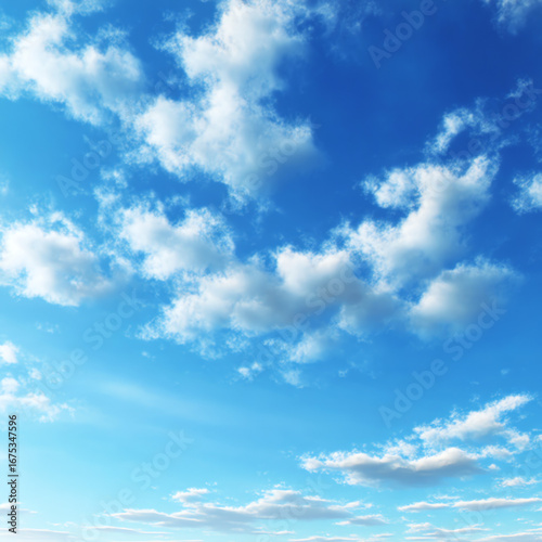 Obraz premium Bright blue sky with scattered white fluffy clouds on a clear day