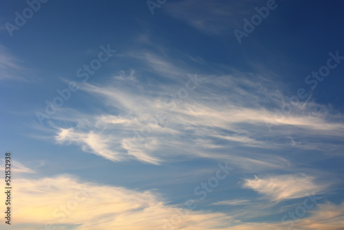 © Andriy Medvediuk, Naklejka premium Bright Blue sky with white cloud. Beautiful sky background and wallpaper. Clear day and good weather in the morning.