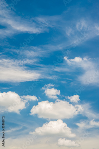 Obraz premium Bright blue sky with white clouds in sunny day background. Nature and...
