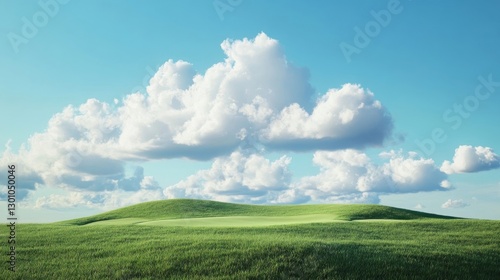 © Ariestia, Fototapeta premium Bright blue sky with white clouds over green grass fields