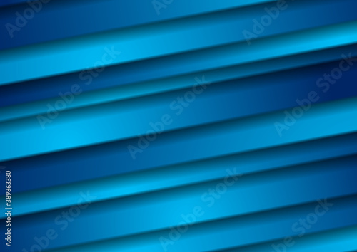 Obraz premium Bright blue smooth stripes abstract tech background. Modern glossy vector design