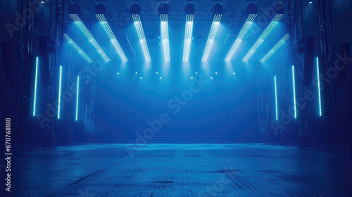 Obraz premium Bright blue stadium lights shining down on an empty stage