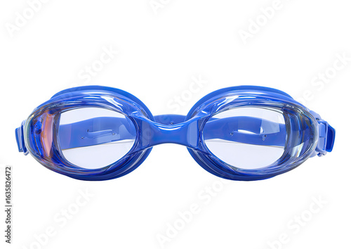 Fototapeta premium Bright blue swimming goggles, clear lenses