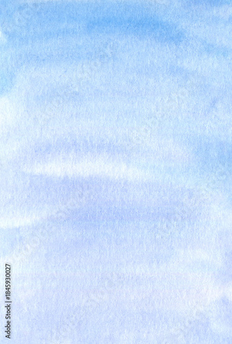 © Asymme3, Fototapeta premium Bright blue watercolor sky background, pastel violet mauve splash. Abstract pastel hand painted texture for wedding invites, bridal showers, nursery etc