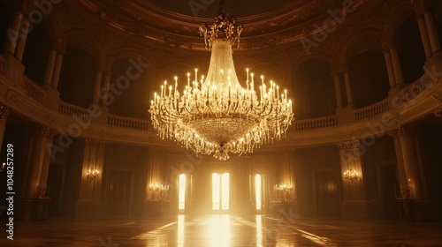 Fototapeta premium Bright chandelier illuminating an elegant ballroom, symbolizing the timeless...