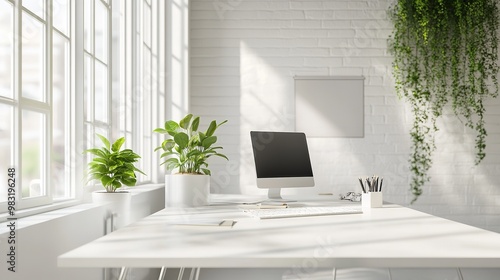 Obraz premium "Bright, Clean, and Tidy Office with Asian-Inspired Design"