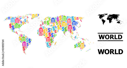 Fototapeta premium Bright colored banking and money mosaic and solid map of world. Map of world...