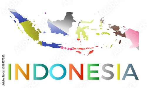 Obraz premium Bright colored Indonesia shape. Multicolor geometric style country logo. Modern trendy design. Cool vector illustration.