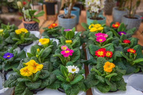 © Vladimir Liverts, Fototapeta premium Bright colored primula flowers
