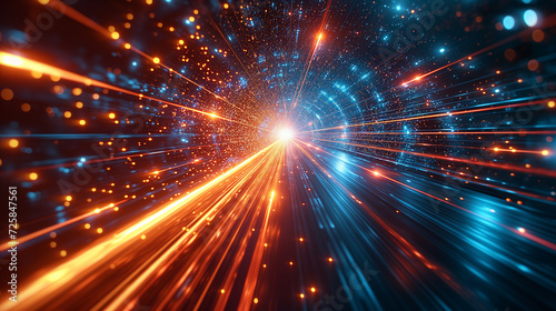 Fototapeta premium Bright colorful lines simulating cyberspace. Abstract digital network.