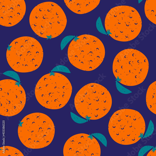 Fototapeta premium Bright colorful oranges vector seamless pattern on blue background.