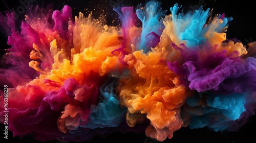 © hamad, Fototapeta premium Bright colorful powder paint splashed onto a black background.