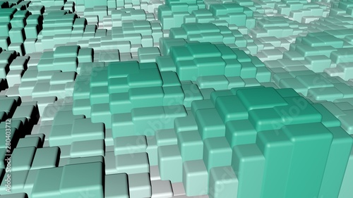 © Photochowk, Obraz premium Bright colorful shiny solid squares floating in a wavy shape background.