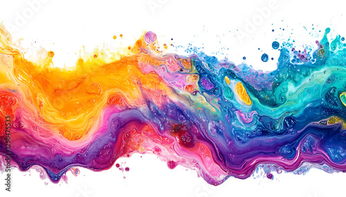 © SekhSadi, Fototapeta premium Bright colorful watercolor stain splash splatter brush stroke on white background PNG.AI GENERATED