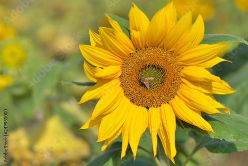 Fototapeta premium Bright colorful yellow sunflower. Shallow depth of field.
