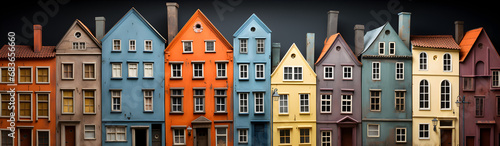 Fototapeta premium Bright Colors Of Old Houses. Illustration On The Theme Of Fairy Tales And Fantasy, Pictures And Book Illustrations. Generative AI