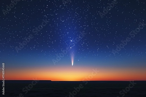 © Margarita Ratatosk, Obraz premium Bright comet with a long tail streaking across a starry night sky during twilight. Space exploration concept for astronomy and science.